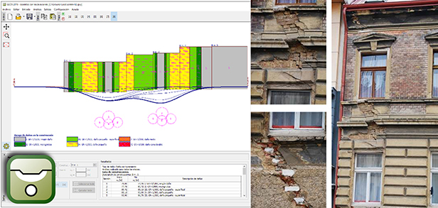 Análisis de deterioro en estructuras causado por excavación de túneles. Programa que estudia y determina la forma de la cubeta de subsidencia sobre excavaciones y evalúa el daño de estructuras situadas en el área afectada.