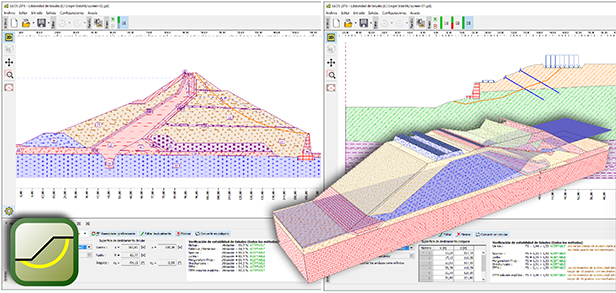 Este programa se utiliza para realizar el análisis de estabilidad de taludes (terraplenes, cortes de tierra, estructuras de contención ancladas, muros de suelo reforzado, etc.). La superficie de deslizamiento se considera circular (métodos Bishop, Fellenius / Peterson, Janbu, Morgenstern-Price o Spencer) o poligonal (Métodos Sarma, Janbu, Morgenstern-Price o Spencer).