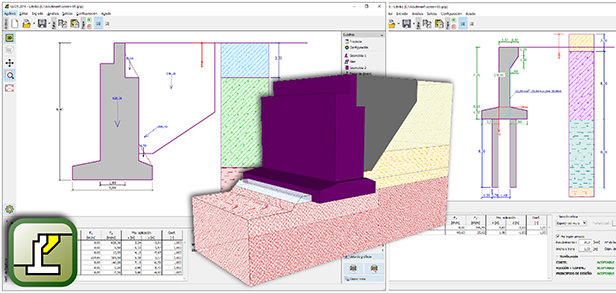 Este programa se utiliza para verificar el diseño de estribos y muros con ala. Permite comprobar el estribo contra vuelco, translación, capacidad portante del suelo de cimentación y dimensionamiento de las secciones decisivas o de hormigón armado (incluyendo las alas).