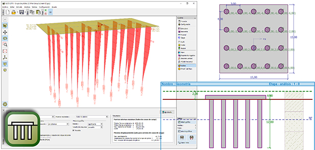 Este programa se utiliza para analizar un grupo de pilotes utilizando tanto el método spring (MEF), como soluciones analíticas. Pueden ser consideradas ambos pilotes flotantes y fijos en el subsuelo.