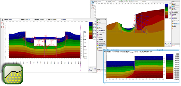 Este programa se utiliza el modelado de tareas geotécnicas por medio de Elementos Finitos como: asentamiento del terreno, tablestacas / muros pantalla, estabilidad de taludes, análisis de túneles, excavación, análisis de flujo de agua estable e inestable, etc.
