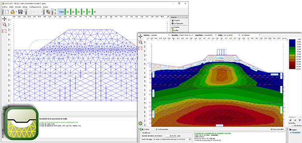 MEF – Consolidación se utiliza para realizar el análisis de asentamiento en función del tiempo debajo de los cimientos, muros de contención y cargas superficiales (sobrecarga). El módulo consolidación es una extensión del programa MEF para el análisis de problemas geotécnicos.