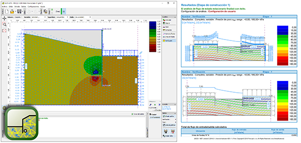 • Representación de la distribución de la presión de poros, velocidad de flujo y nivel freático.